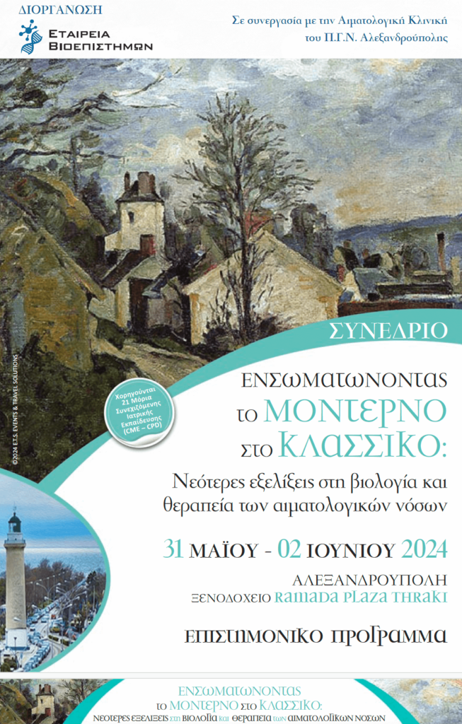 Oral presentation at the Integrating the modern in the classic: Newer developments in biology and treatment of hematological diseases Conference hosted at the Ramada Plaza Thraki in Alexandroupolis, Greece, 31 May-2 June, 2024. Title: Novel concepts for personalized prediction in Hematology